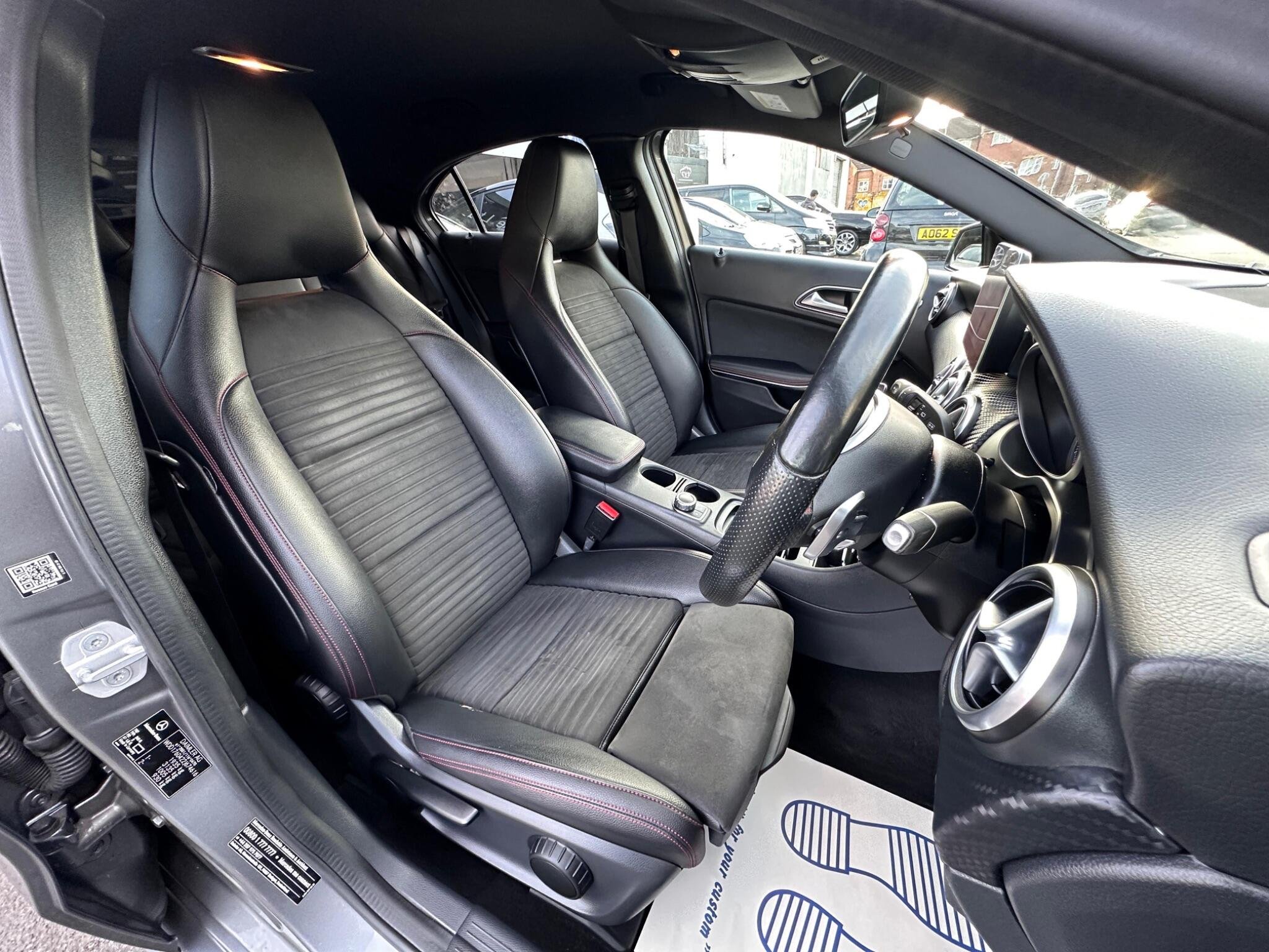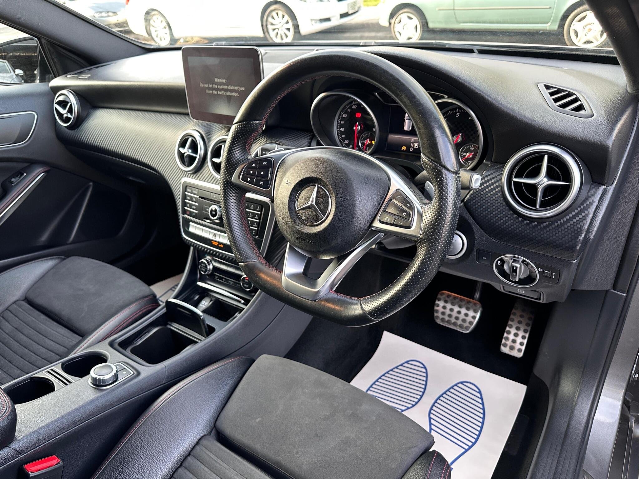 15 MONTH WARRANTY INCLUDED, 12 MONTHS AA BREAKDOWN COVER INCLUDED, HPI CLEAR WITH REPORT INCLUDED, EXTENDED WARRANTY AVAILABLE FOR UP TO 36 MONTHS This 2017 Mercedes Benz A Class A180 AMG Line boasts a full service history and has had only one owner from new, ensuring excellent provenance. Powered by a 1.6L petrol engine and meeting Euro 6 emissions standards, this model offers a responsive drive with 0-62mph achieved in a brisk 8.6 seconds. Inside, you'll find the comfort of THERMOTRONIC Luxury Automatic Climate Control for a perfect cabin temperature, while the Reversing Camera with Parking Guidelines provides a 180 degree view for easier manoeuvring. The Headlamp Assist automatically activates the headlights, enhancing safety and convenience. The AMG Line trim adds a sporty feel to this already stylish A Class. This vehicle is also noted for its low insurance group, making it an economical choice. Furthermore, you'll appreciate the generous boot space, perfect for everyday needs and longer journeys. A 12 month MOT will be provided on purchase, and the vehicle history check is clear, offering peace of mind. These features collectively indicate how this Mercedes Benz A Class offers a superior ownership experience compared to similar vehicles. -